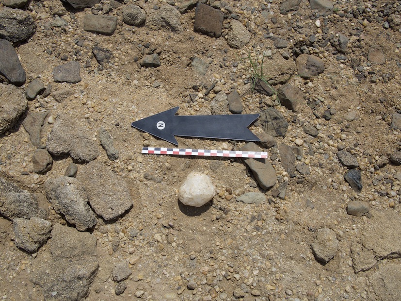 Oldowan-type quartz spheroid on the surface