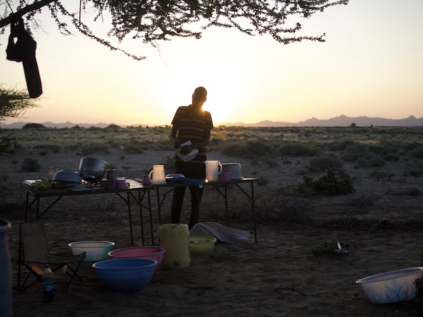 Perparing for dinner at camp