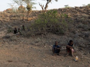 Local boys watching us set up camp